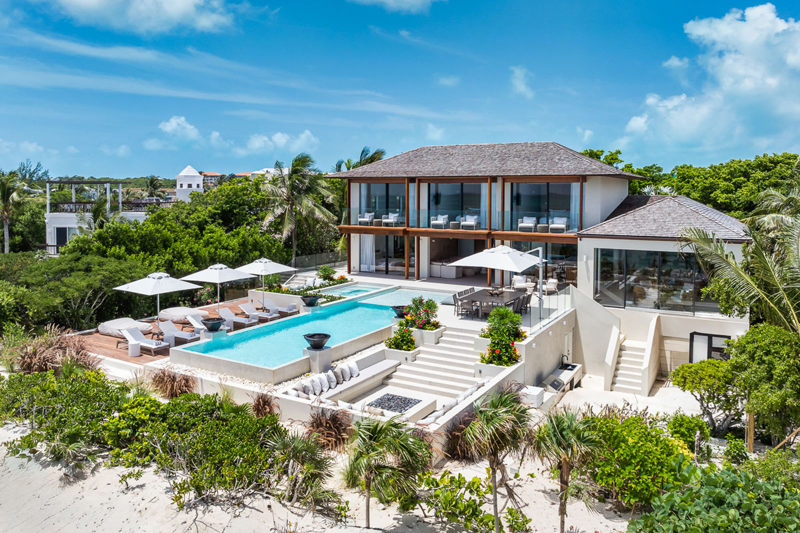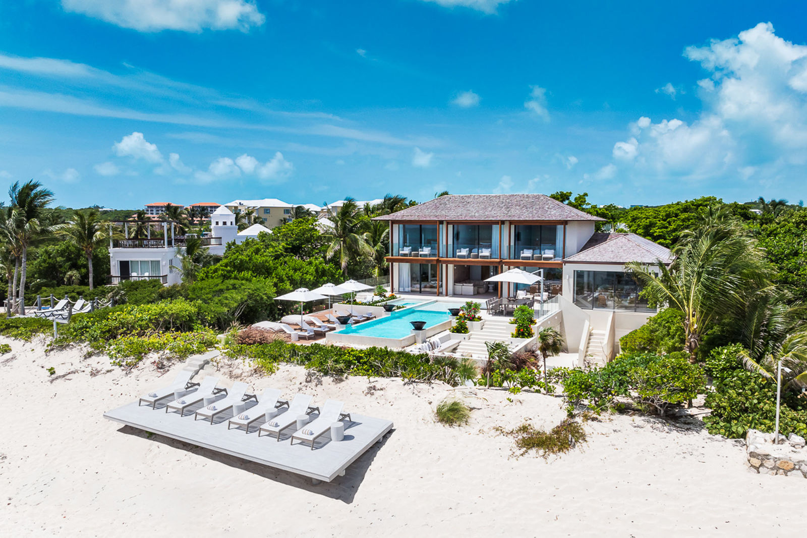 The Seafire is a beautifully appointed, 8 bedroom estate home located on the West end of Grace Bay Beach on Smith’s Reef in Providenciales.