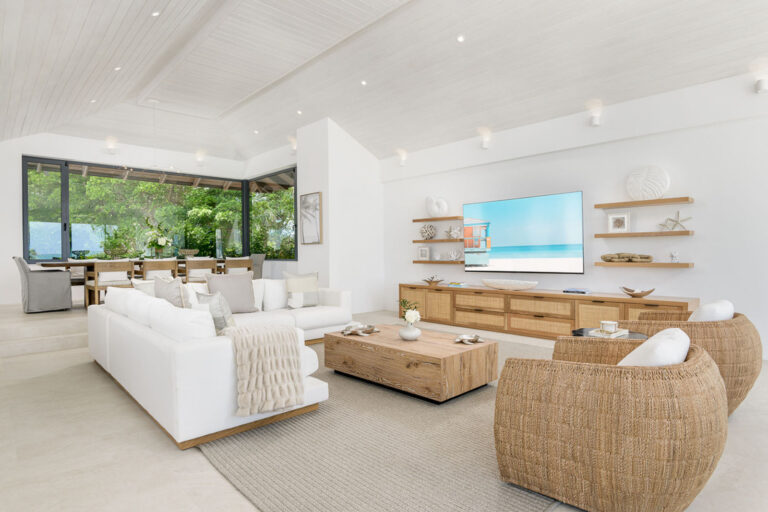 The home has a dedicated full staff complete with a chef, butler and housekeeper to cater to your every whim throughout the day and night. Staff operate out of a separate chef’s kitchen and staff space, allowing you and your guests privacy throughout your stay while the staff work behind the scene.