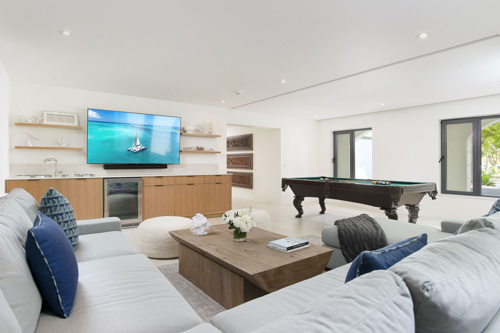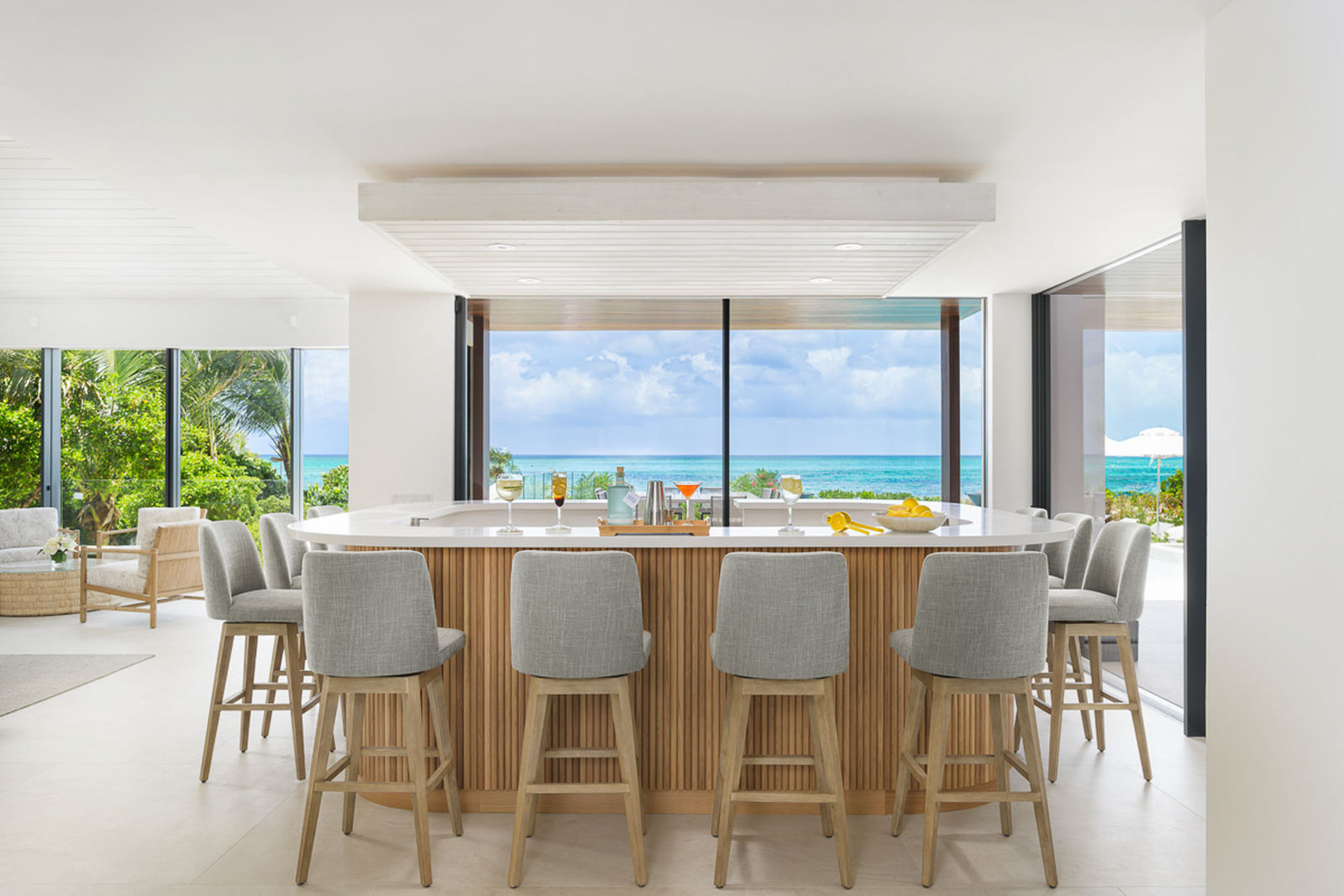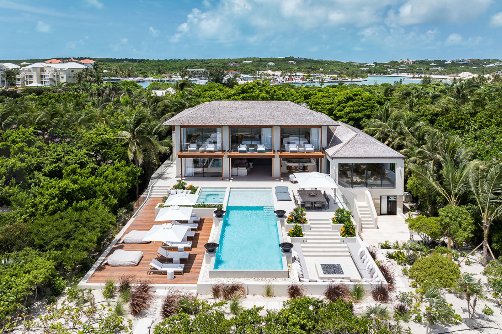The Seafire is styled as a modern, but transitional home that extenuates its already privileged surroundings with distinct textures and flair. The property contrasts beautifully with the turquoise ocean and white sandy beaches that make Turks and Caicos so special.