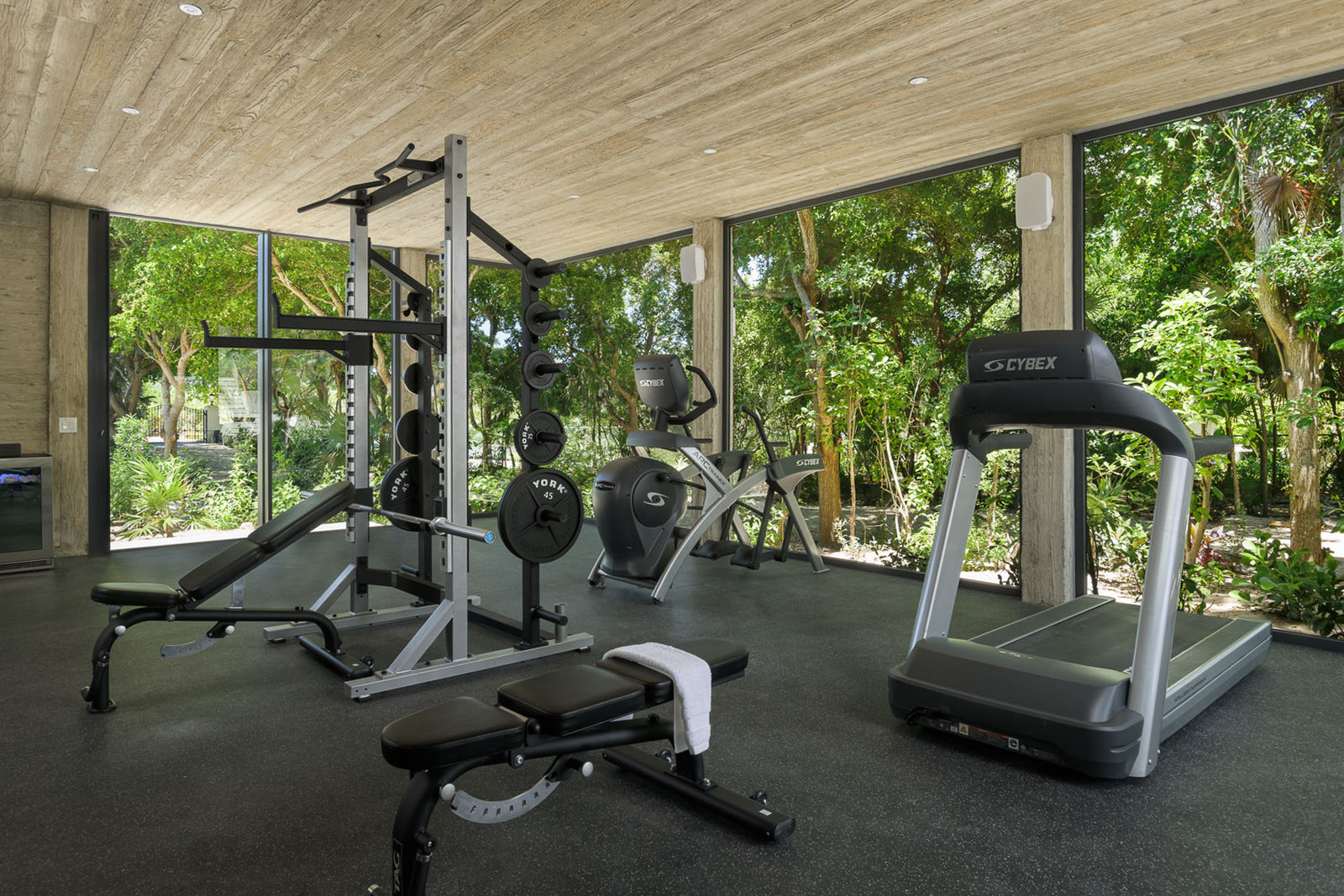 - A large 1600 square foot gym complete with a full set of equipment and weights