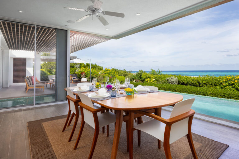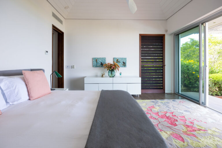 Enjoy our luxury villa featuring a generous pool, stylish furnishings, a well-equipped gym, multiple terraces and an expansive garden. The interior design of Villa Cosmo features distinctive furniture by Roche Bobois. Villa Cosmo has three large master bedrooms with modern, spacious bathrooms as well as a suite with a fold-out sofa bed. All bedrooms have their own terrace. Living, dining and cooking areas can be completely opened on the sidefronts. From here you have a sensational view of the garden and the sea.