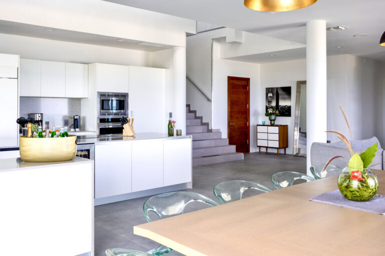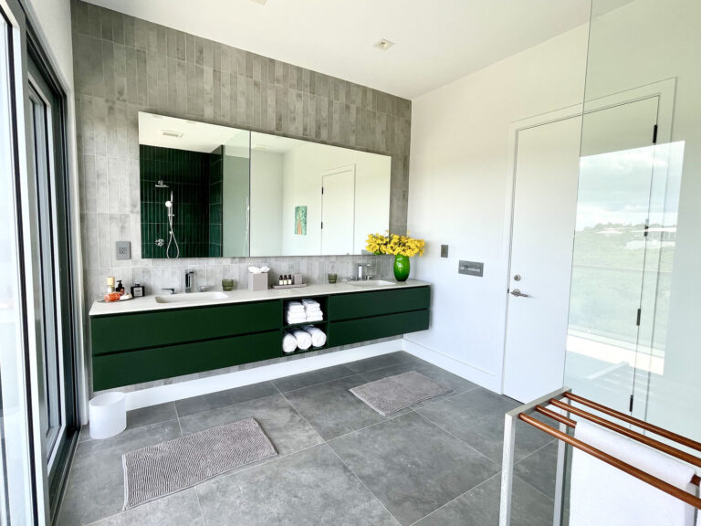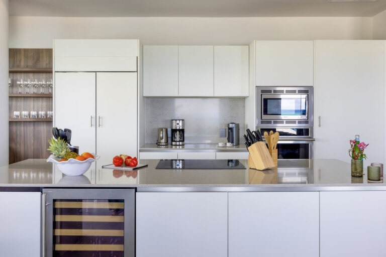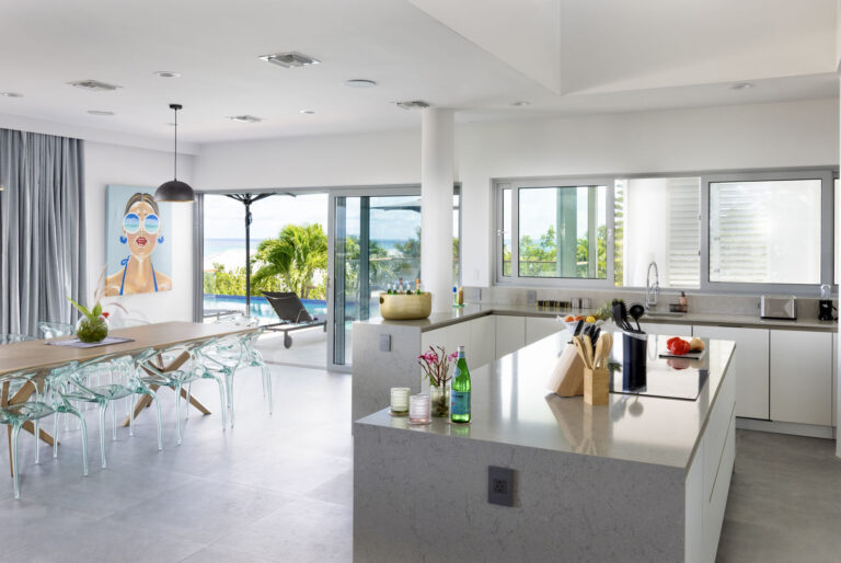 Villa Skyline is a unique hideaway, resting atop Blue Mountain with breathtaking lookouts across the island and the ocean. Like the other villas it is also elegantly furnished with finely selected designer pieces of furniture from Roche Bobois. The villa features imported kitchen and bathroom furniture from Italy, as well as top-of-the-line appliances and accessories from Europe and the USA.