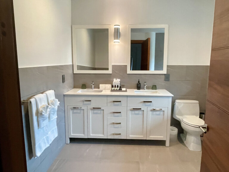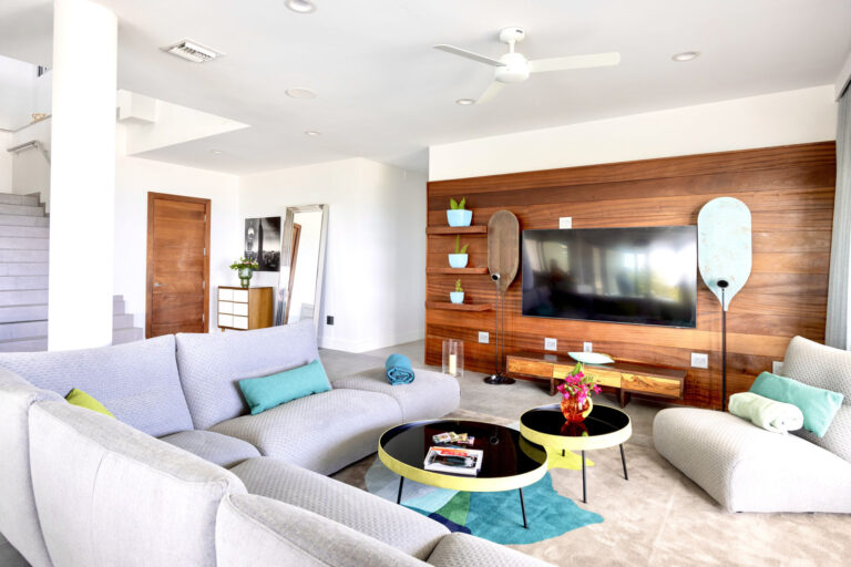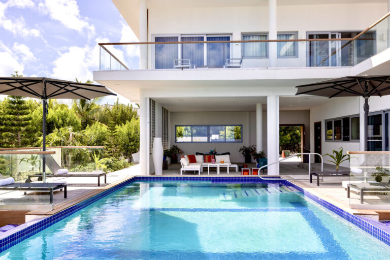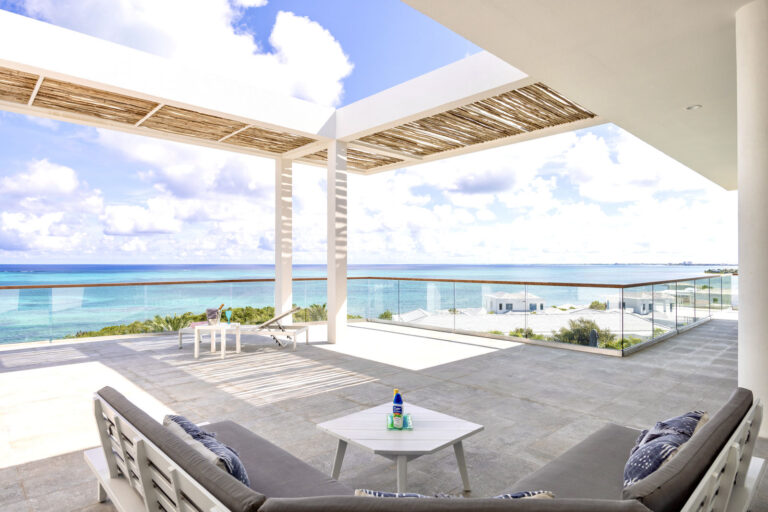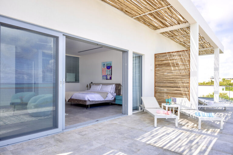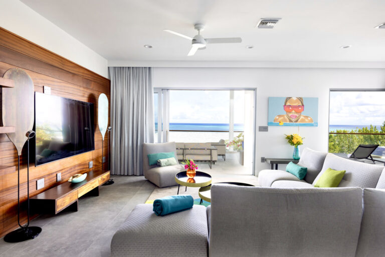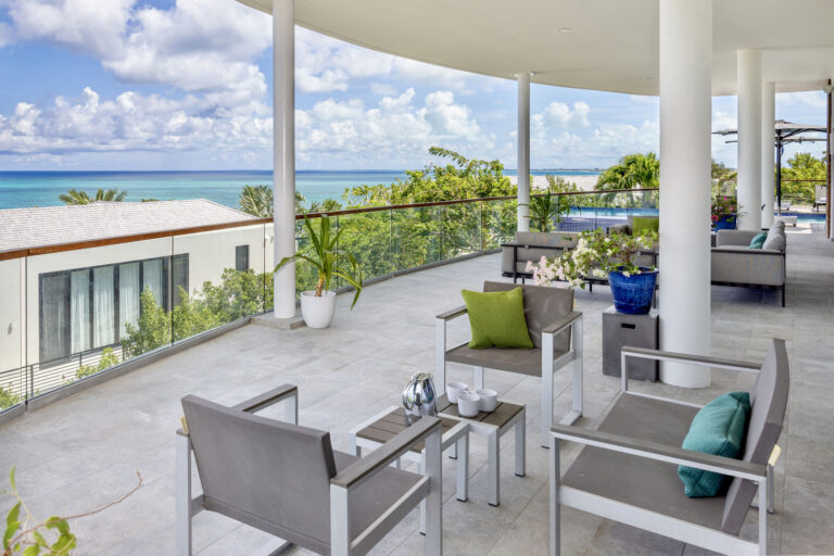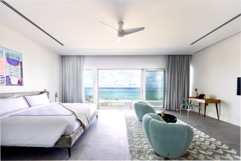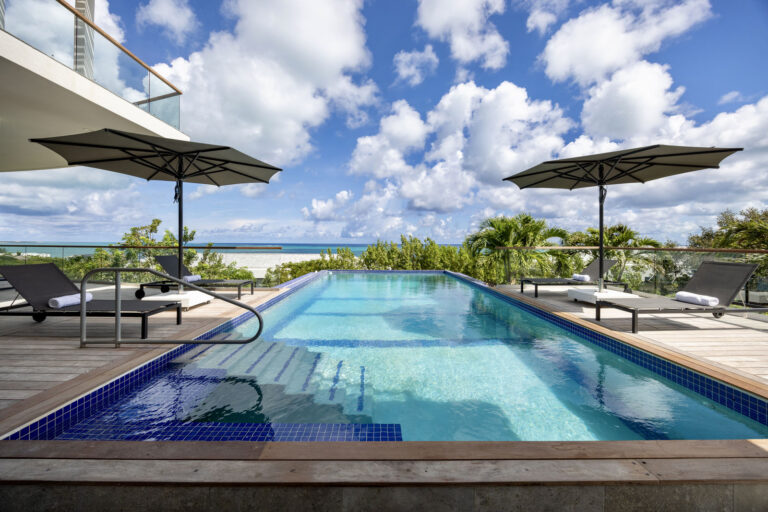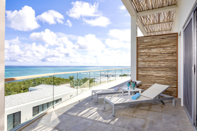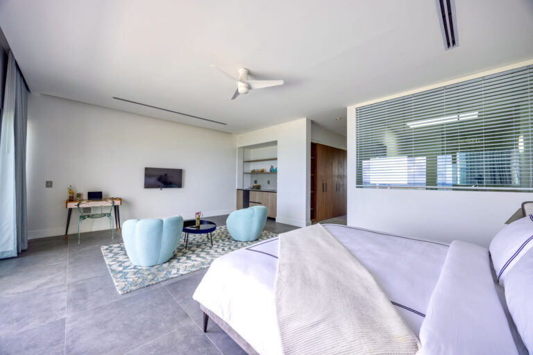 This villa boasts 5 spacious bedrooms, each with an ensuite luxurious bathroom and private terrace. Two newly added high end guest suites come with kitchenettes and private balconies, delivering an even more exclusive oceanfront experience. Each room also includes a workspace.
